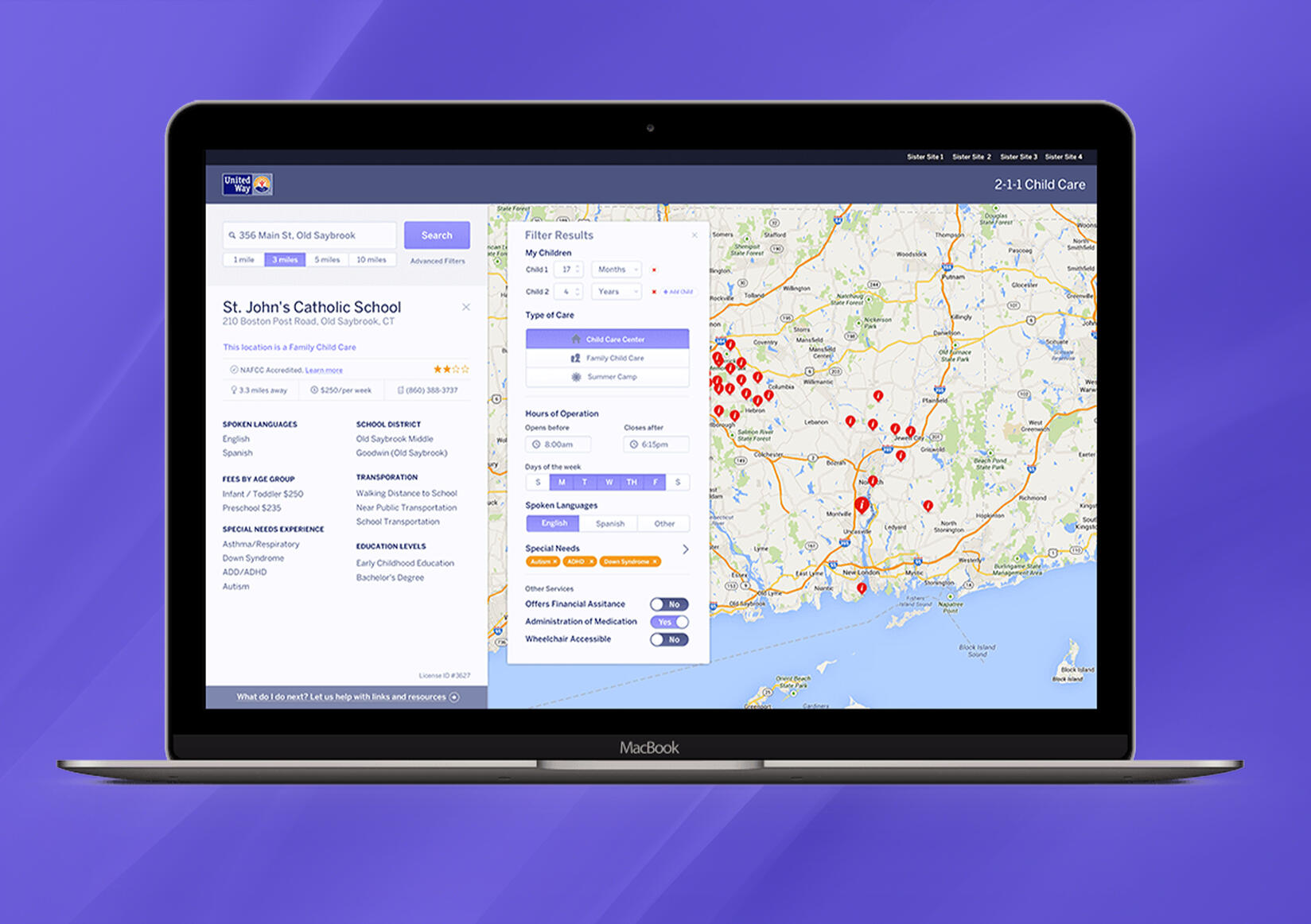 The 2-1-1 Childcare app, a key initiative by United Way, revolutionizes how communities access childcare services. Initially launched as a toll-free hotline, this platform now empowers Connecticut families to effortlessly discover nearly 4,000 state-licensed childcare providers. Through advanced filtering, parents can pinpoint providers meeting specific needs—whether it's NAEYC accreditation, special needs expertise, or convenient hours.The fully responsive web app ensures a seamless search experience, connecting families with reliable, quality childcare solutions tailored to their criteria.